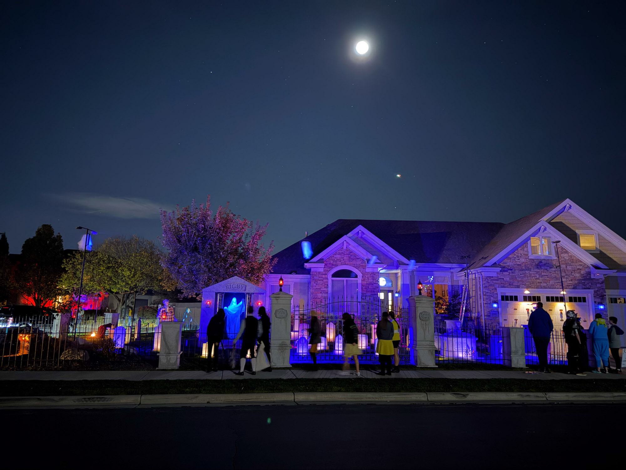 Another good weather year, almost a little too warm for setup. High on Halloween was 62 degrees, with evening temps while we were open in the mid 40's. We didn't have anything new for 2025, as I try to keep up with all that we have currently. I moved one of the lightning flood lights from the back fo the mausoleum to the North most Axeworthy ghost pole. We had good turnout as usual. Halloween was on a Friday night this year so it was busy as usual.